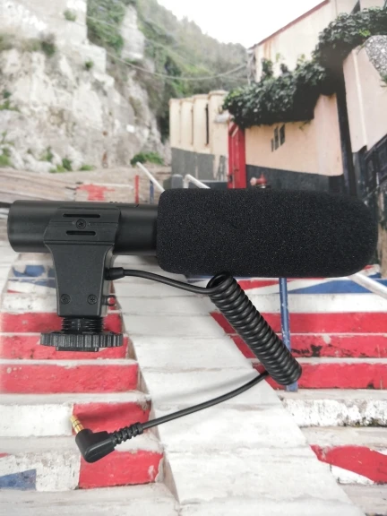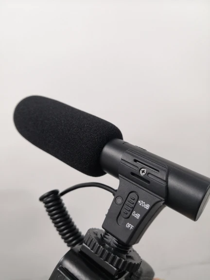 This camera microphone is a high-quality shotgun condenser microphone designed to capture clear, precise audio while reducing background noise, built-in high-quality electronic components. Features a lightweight design for portability and a hot-shoe mount for secure attachment to your camera.