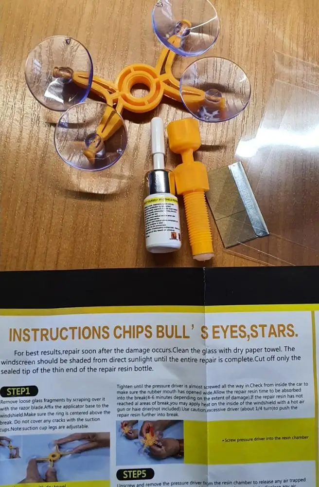 Cracked Glass Repair Kit is designed to repair glass damages including bulls-eye, cracks, spider web, star damages, and some combination breaks only in 20 minutes.
